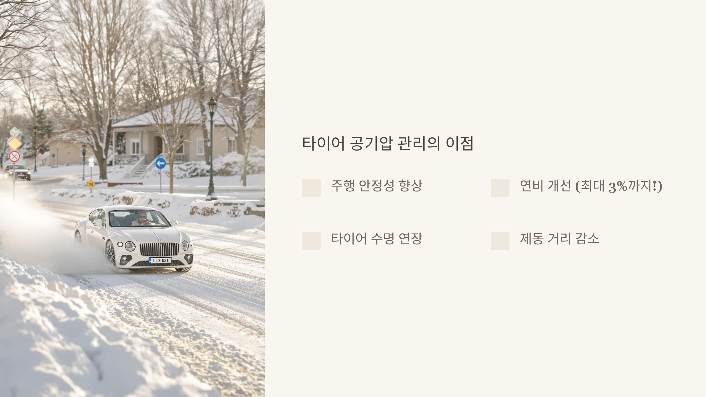 겨울이 다가오면서 우리 차량의 '발'이 되는 타이어에 더욱 신경 써야 할 때입니다. 특히 타이어 공기압은 안전운전의 핵심 요소인데요, 왜 그럴까요? 🤔