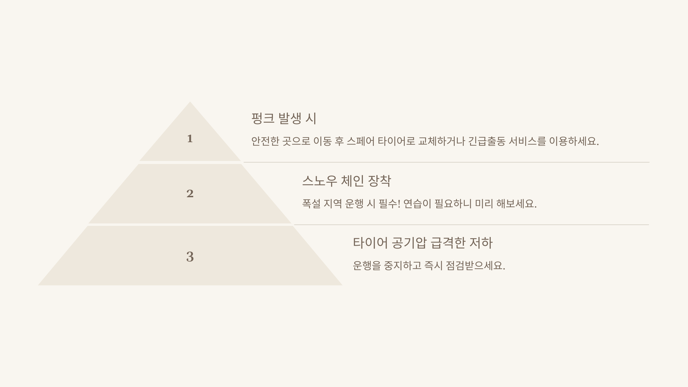 한국도로공사에 따르면, 겨울철 고속도로 사고의 상당수가 타이어 관리 소홀로 인한 것이라고 해요. 작은 관심과 노력으로 큰 사고를 예방할 수 있다는 걸 기억하세요!