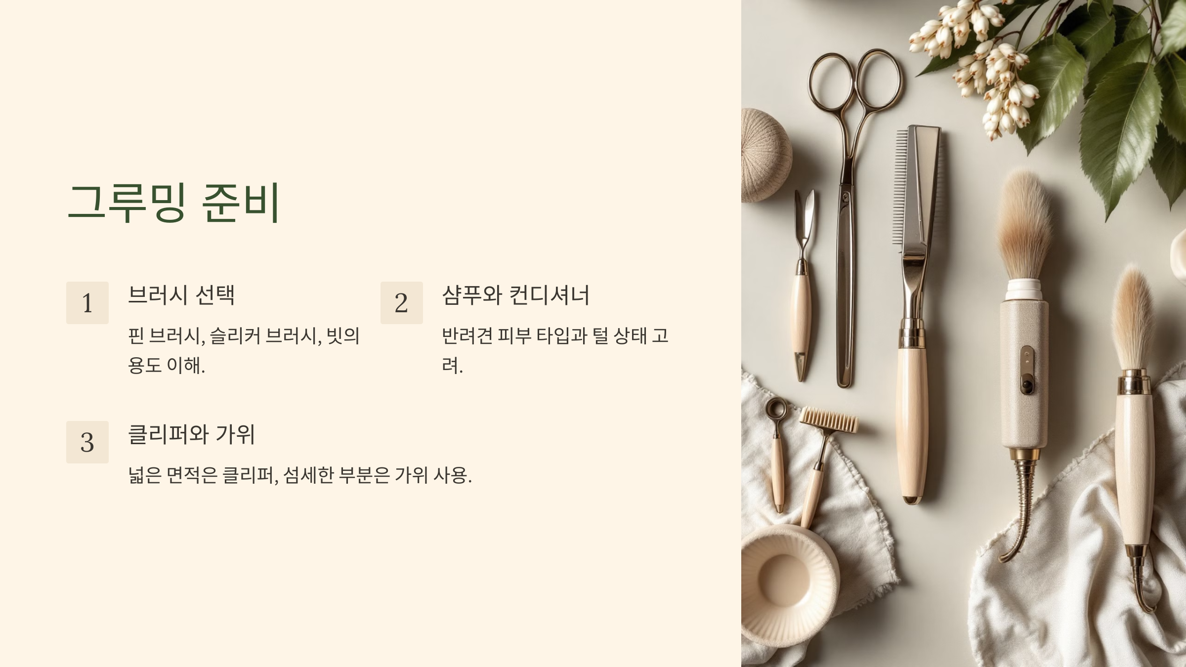 반려견 미용을 시작하기 전, 올바른 준비와 도구 선택은 성공적인 그루밍의 핵심이에요! 🐾 먼저, 필수 그루밍 도구부터 알아볼까요?