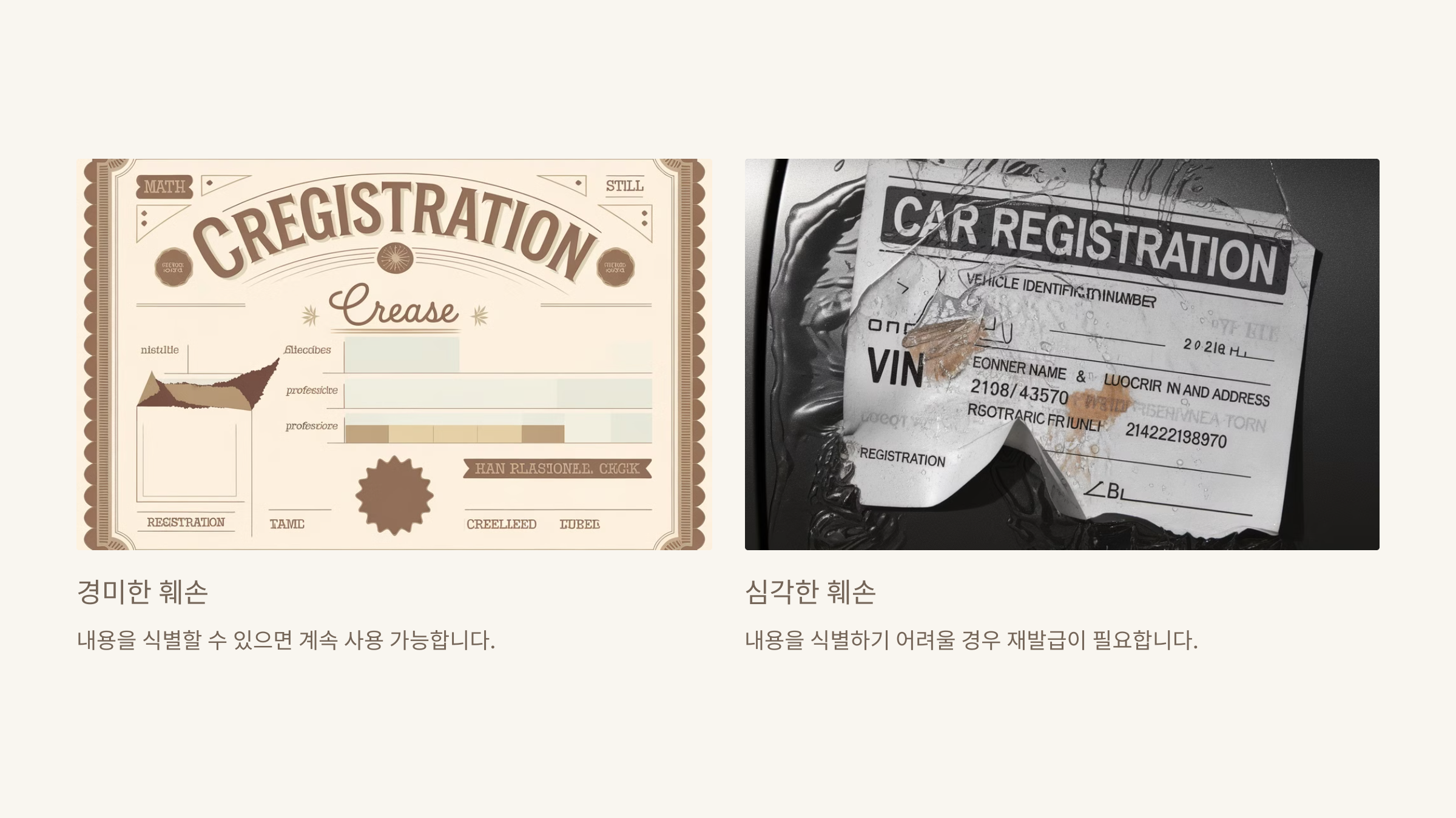 등록증이 찢어지거나 글씨가 지워졌나요? 훼손 정도에 따라 대응 방법이 달라져요.