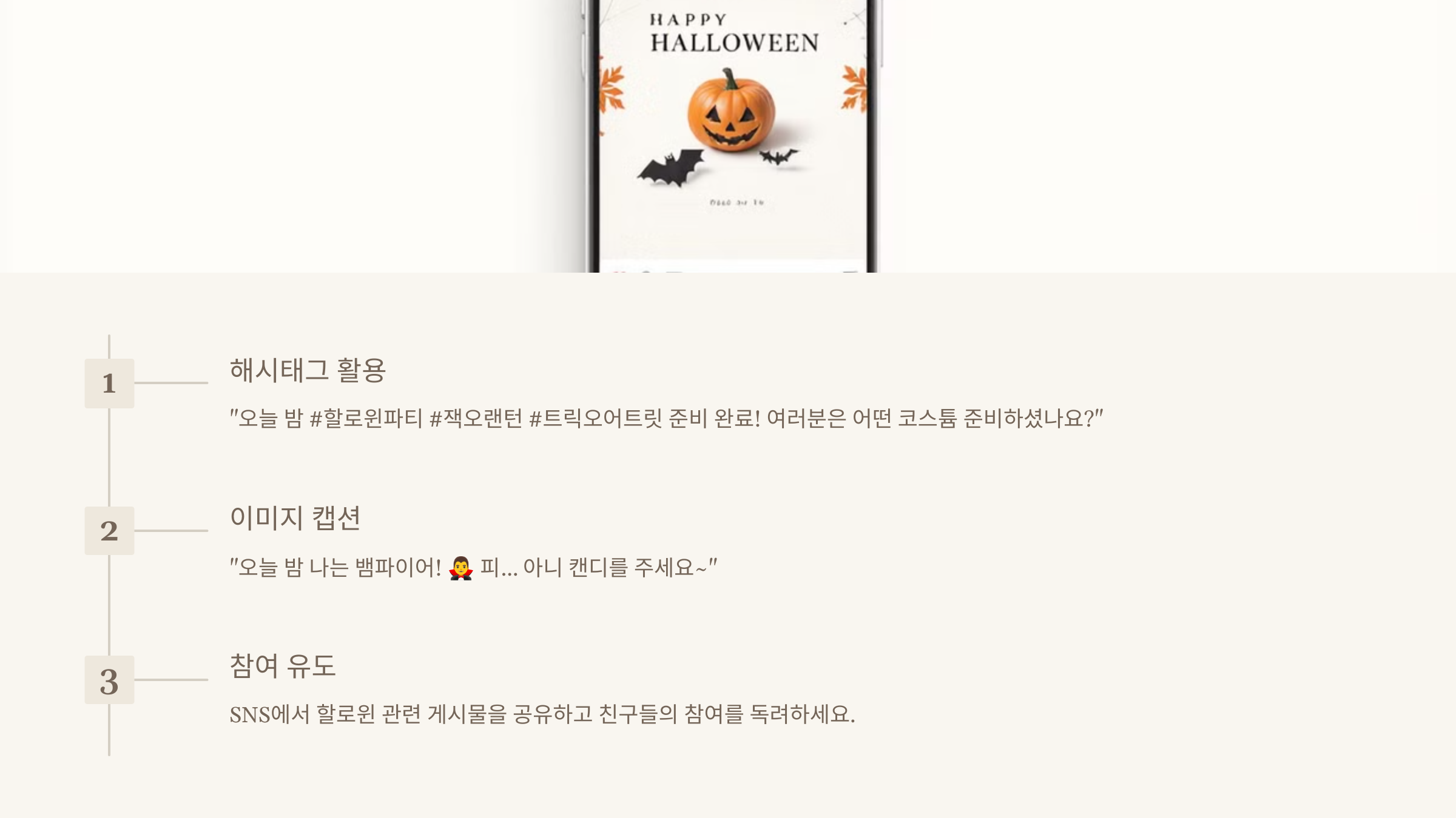 요즘 시대에 SNS는 빼놓을 수 없는 소통 수단이죠. 할로윈 시즌에는 특히 인스타그램이나 페이스북에서 다양한 할로윈 관련 게시물을 볼 수 있어요. 여러분도 참여해보는 건 어떨까요?