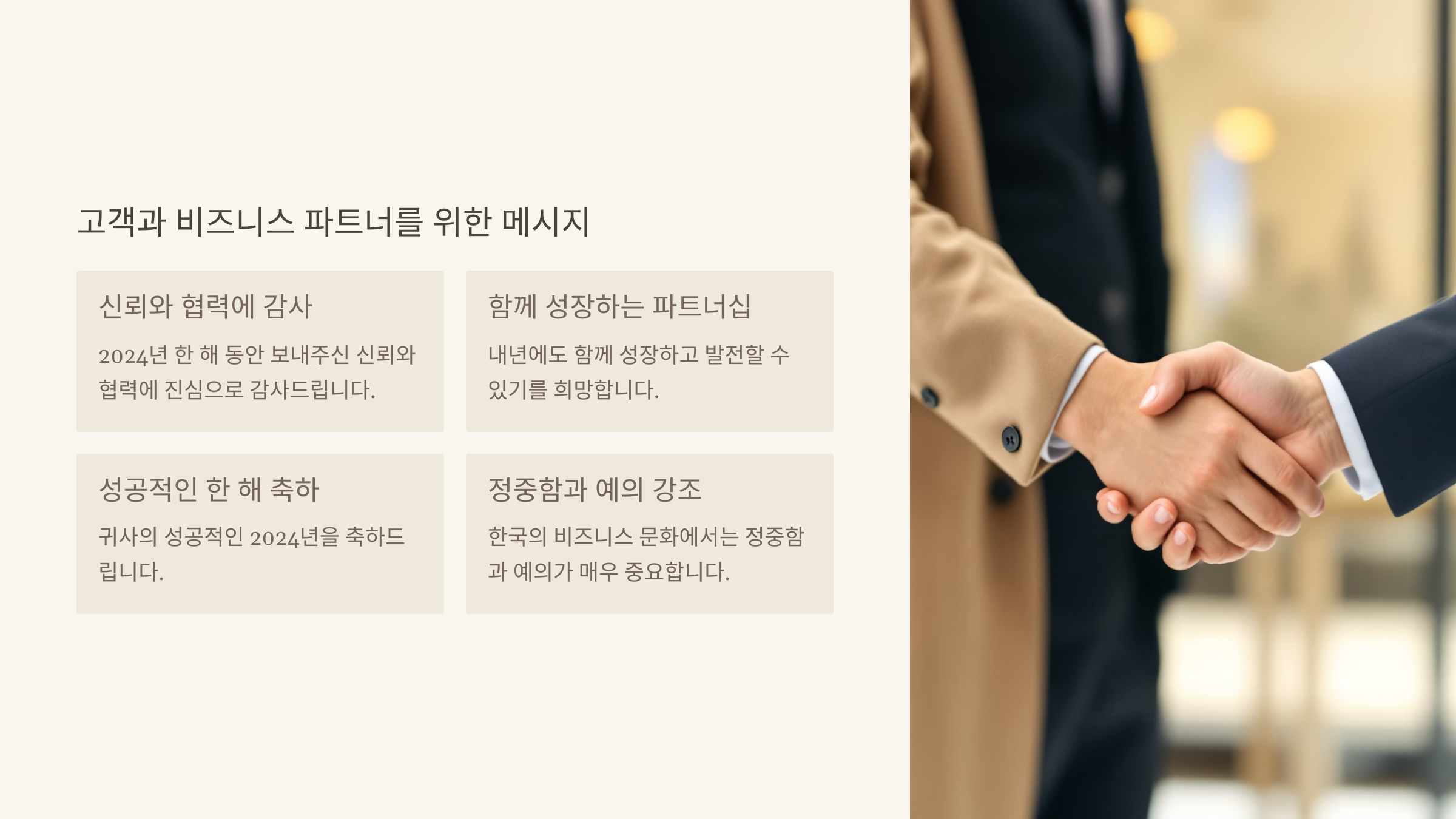 비즈니스 관계를 위한 2024년 마무리 인사말