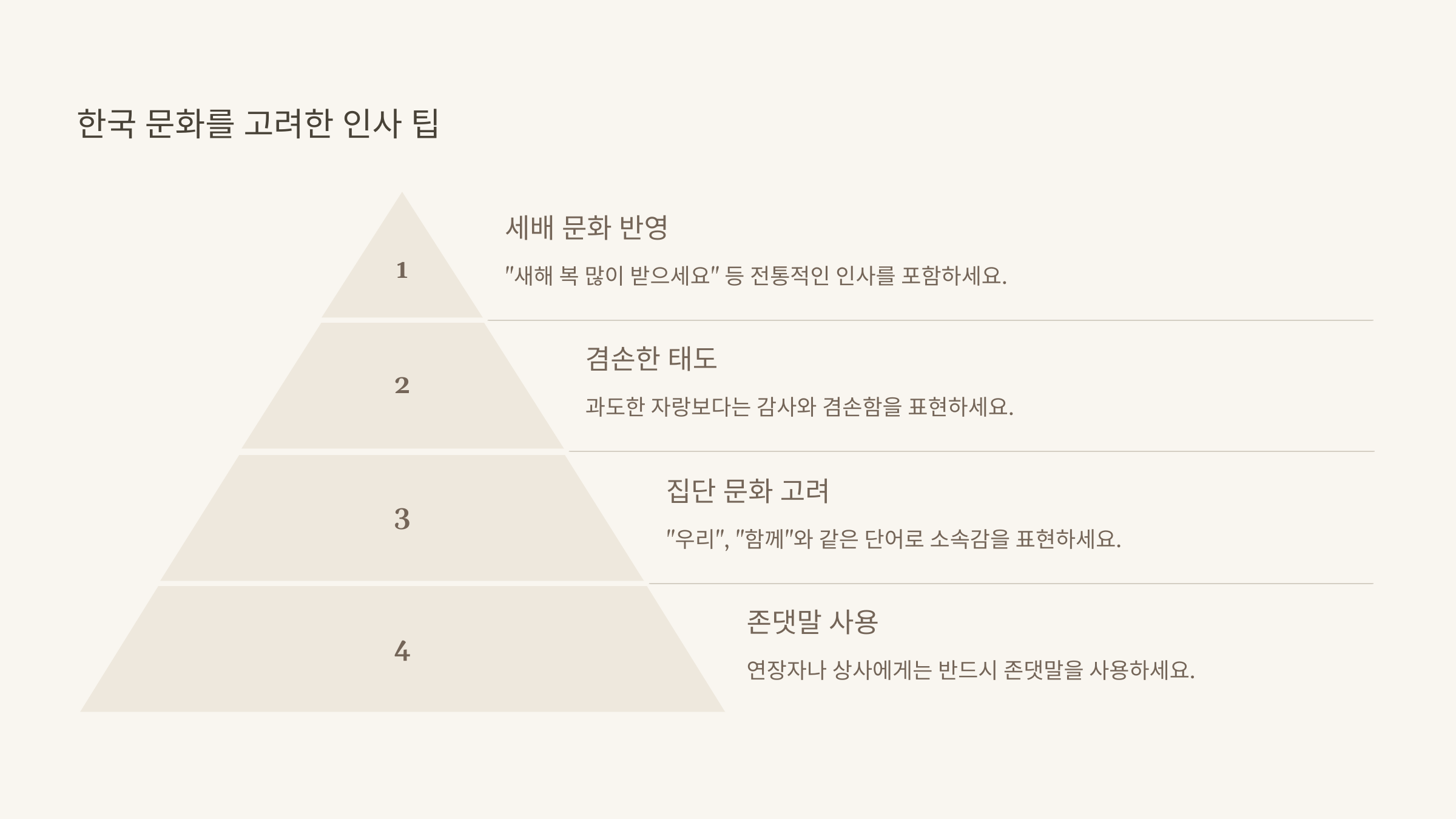 한국의 문화적 특성을 고려한 인사말은 더욱 의미 있게 다가갈 수 있습니다.